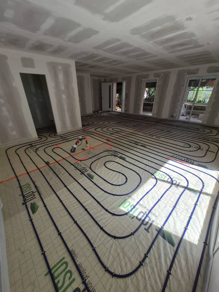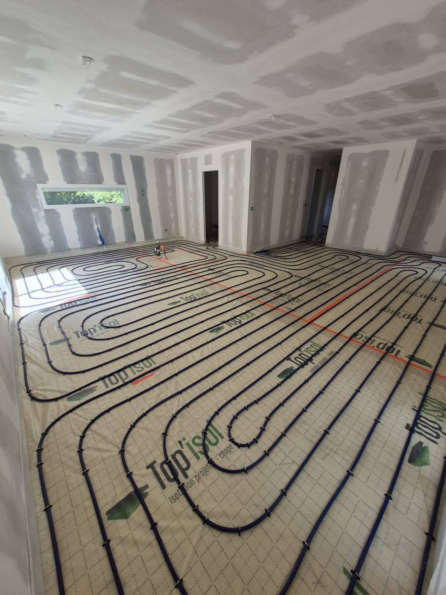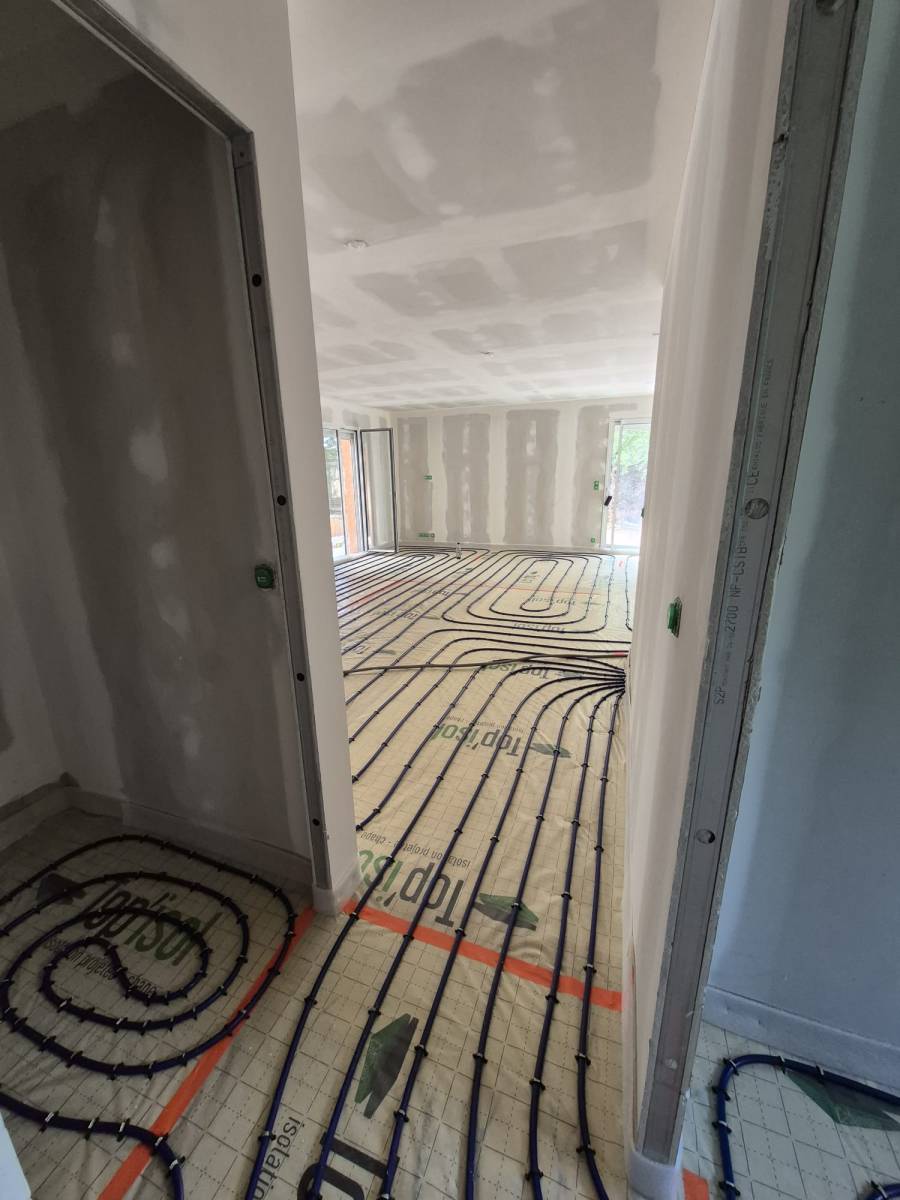 Duo d'énergie a été choisi pour intervenir sur la commune de Serpaize pour la rénovation complète de ce système de chauffage. La rénovation globale de cette maison de Serpaize permet de proposer l'installation d'un plancher chauffant offrant de nombreux avantages. Il diffuse une chaleur douce et constante, rendant le sol tiède et facilitant l’aménagement intérieur sans radiateurs. En plus du confort, il est économique grâce à son fonctionnement à basse température.