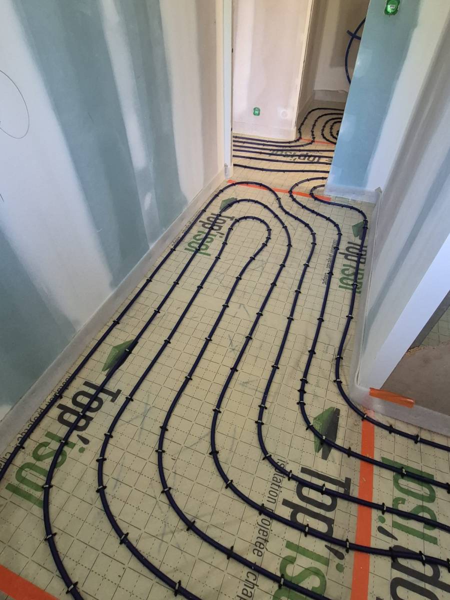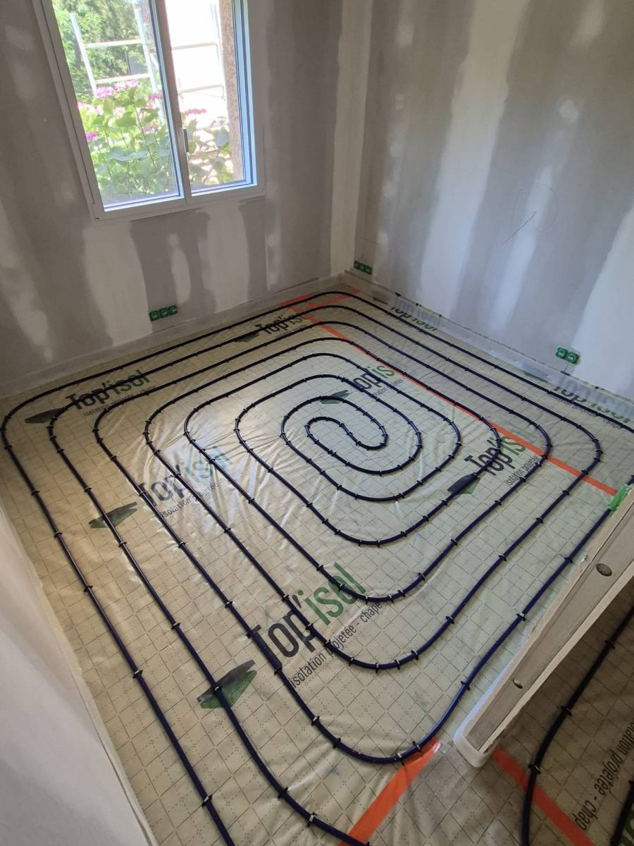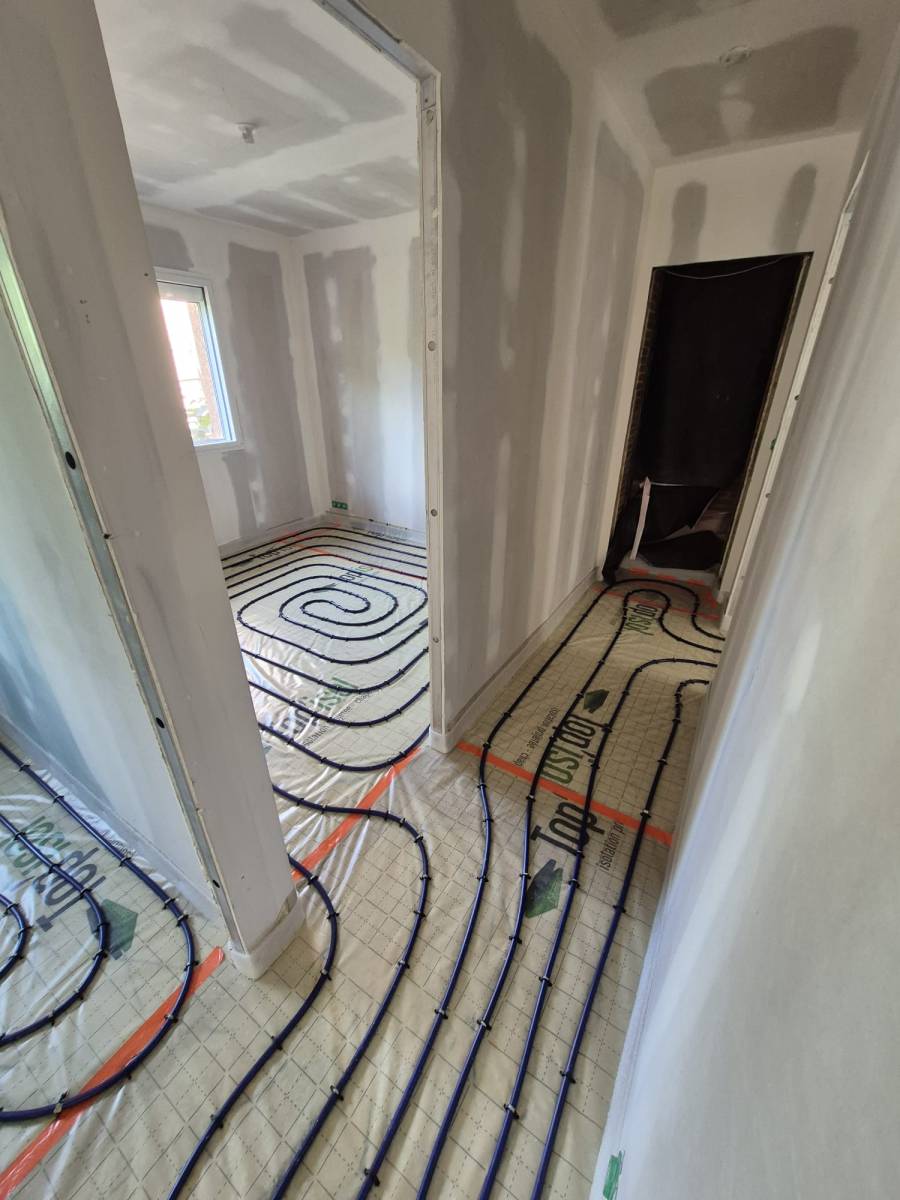 Duo d'énergie a été choisi pour intervenir sur la commune de Serpaize pour la rénovation complète de ce système de chauffage. La rénovation globale de cette maison de Serpaize permet de proposer l'installation d'un plancher chauffant offrant de nombreux avantages. Il diffuse une chaleur douce et constante, rendant le sol tiède et facilitant l’aménagement intérieur sans radiateurs. En plus du confort, il est économique grâce à son fonctionnement à basse température.